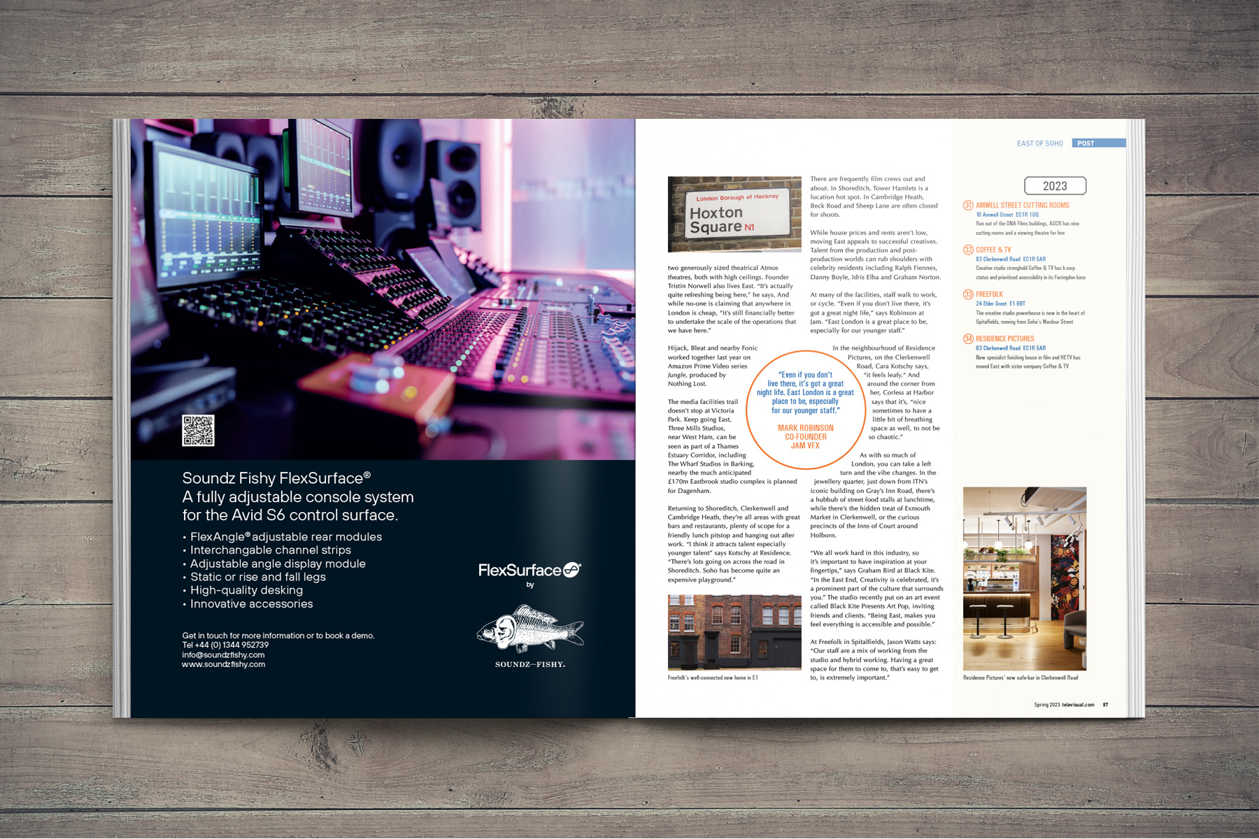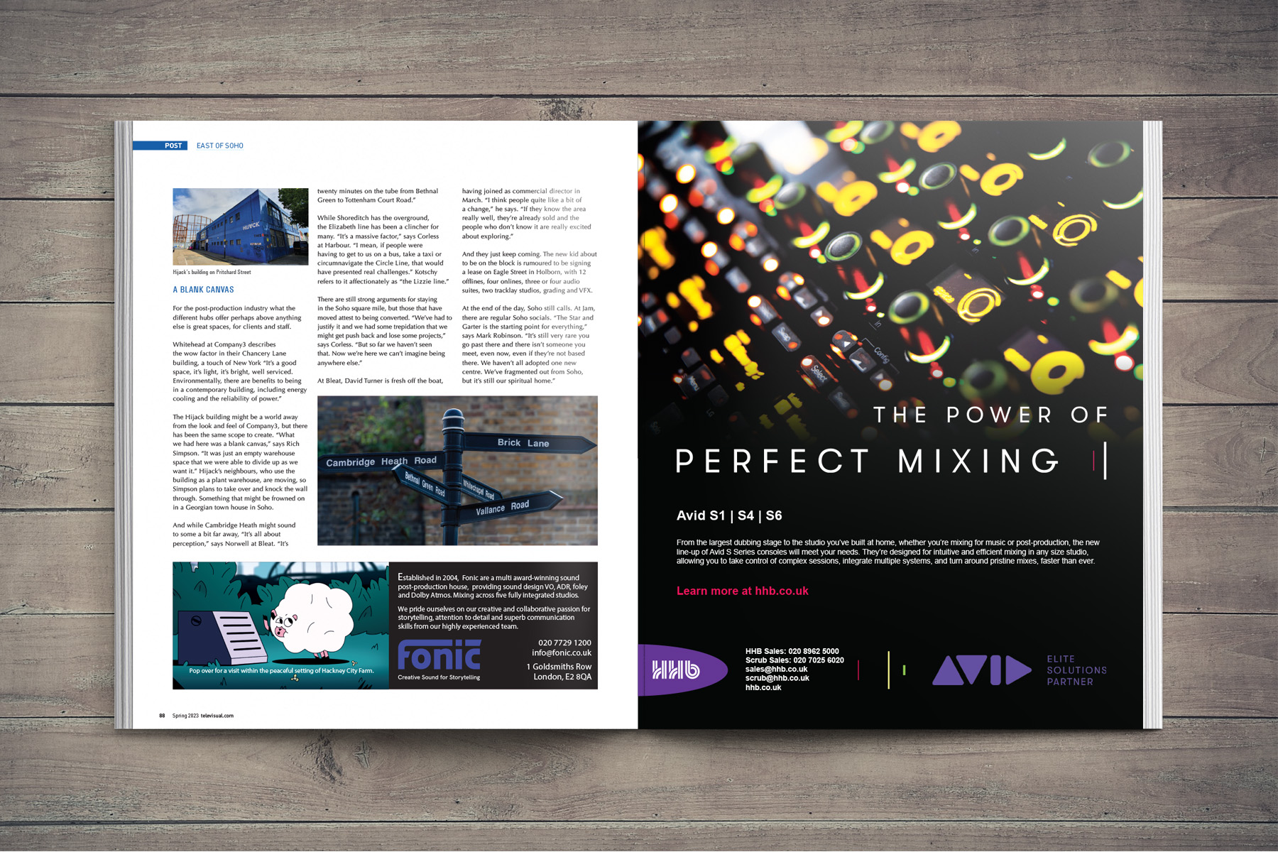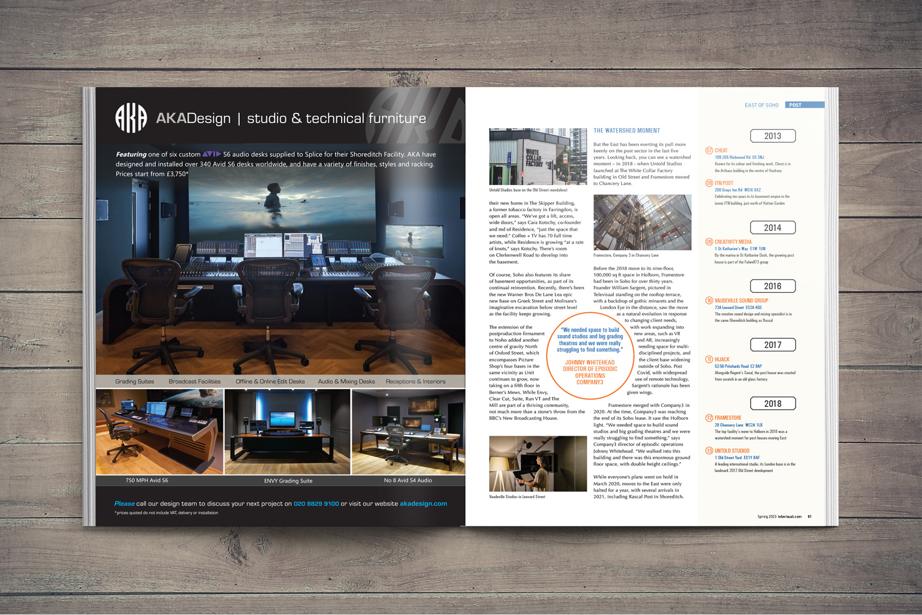 This feature ran over seven pages of the magazine and focused on the gradual migration of post production companies to East London. The article led with stylised map which showed the locations of all the post houses featured and included illustrations of famous landmarks as well. Drawing this map and ensuring everything was correctly positioned made me realise the genius of Harry Beck, who created the now famous and beautifully-crafted London Tube map!